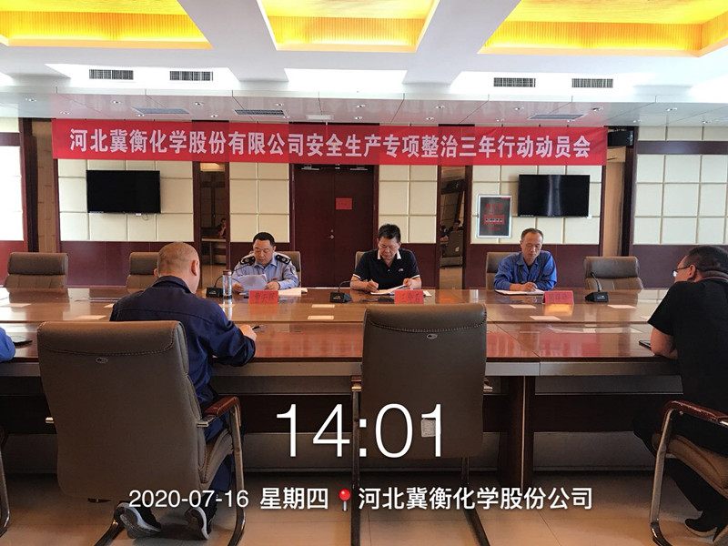 7月16日,我公司召開安全生產專項整治三年行動動員會,會上,安全管理部曹云輝主任宣讀了《河北冀衡化學股份有限公司安全生產專項整治三年行動方案》,公司王金石副總經理做了總結講話。